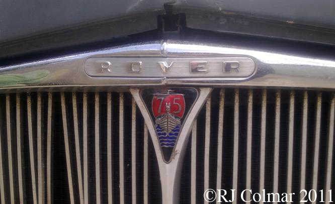 Because of material shortages immediately after WW2 these vehicles incorporated a high percentage of aluminium content and were to be seen in competitions of the day including the 1955 Mille Miglia in which Lando Barsotti brought his #347 Rover 75 P4 in 271st. The 75 seen here was powered by a 2.2 litre /136 cui 6 cylinder motor featuring the same overhead inlet valves and side exhaust valve design as had been a feature of the earlier P3.